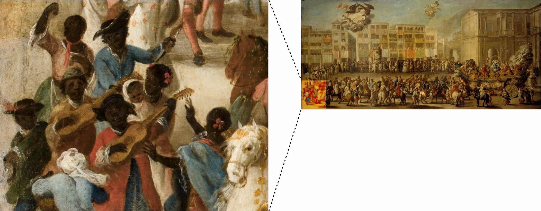 Gli schiavi africani sono quindi coinvolti nella vita della società coloniale ma, seguendo gli usi dei bianchi, partecipano alle feste della città adattandosi al gusto del ballo europeo.