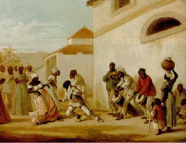 Ancora più indicativo è quello che scrive Thomas Lindley nel suo libro nel 1805 durante un viaggio in Brasile. Il ballo dei neri è un misto di danze africane e fandangos spagnoli e portoghesi. Si tratta di un ballo individuale nato dalla fusione di elementi africani ed europei che ha acquisito lo status di ballo nazionale e che viene praticato da tutte le classi sociali. Le regole sociali sono accantonate in favore del divertimento, uomini e donne si toccano in modo sconveniente e l’osservatore europeo giudica questi balli come un modo per rompere le barriere della decenza e aprire le porte al vizio e alla depravazione.