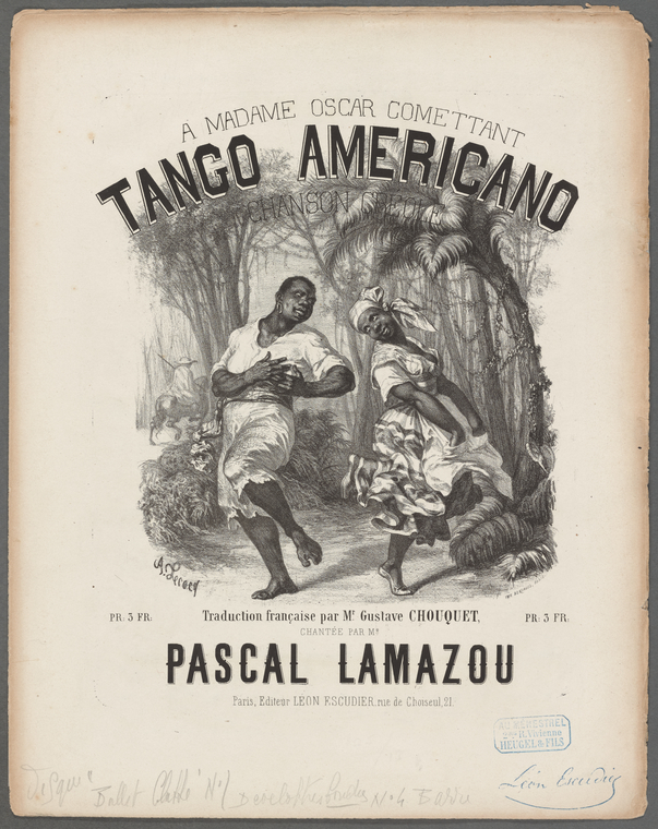 Anche in Spagna il tango è conosciuto come un ballo africano come si evince dagli annunci teatrali del Diario de Madrid del 1822: “En el de la Cruz à las 8 de la noche […] comedia en 3 actos: con el baile titulado Tango de los negros”20. Per quanto non possiamo sapere di che tipo di spettacolo si trattasse è chiaro però che la parola tango è collegata a un ballo che appartiene ai neri.